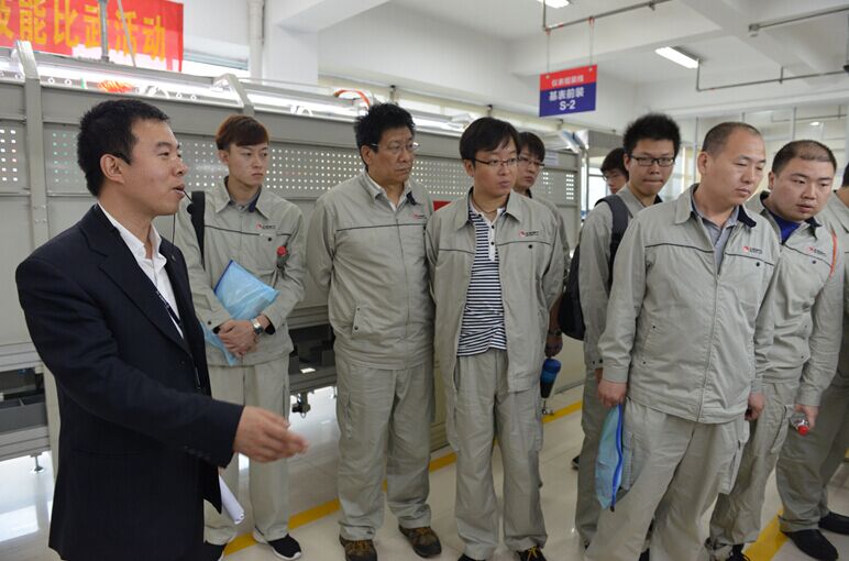 隨后,學(xué)員們分兩批在天信章欽養(yǎng)講師、陶朝建講師的帶領(lǐng)下參觀天信,高科技的展廳、規(guī)范整潔的生產(chǎn)車間、細致的看板管理、企業(yè)文化建設(shè)等方面,都引起了大家濃厚的興趣。