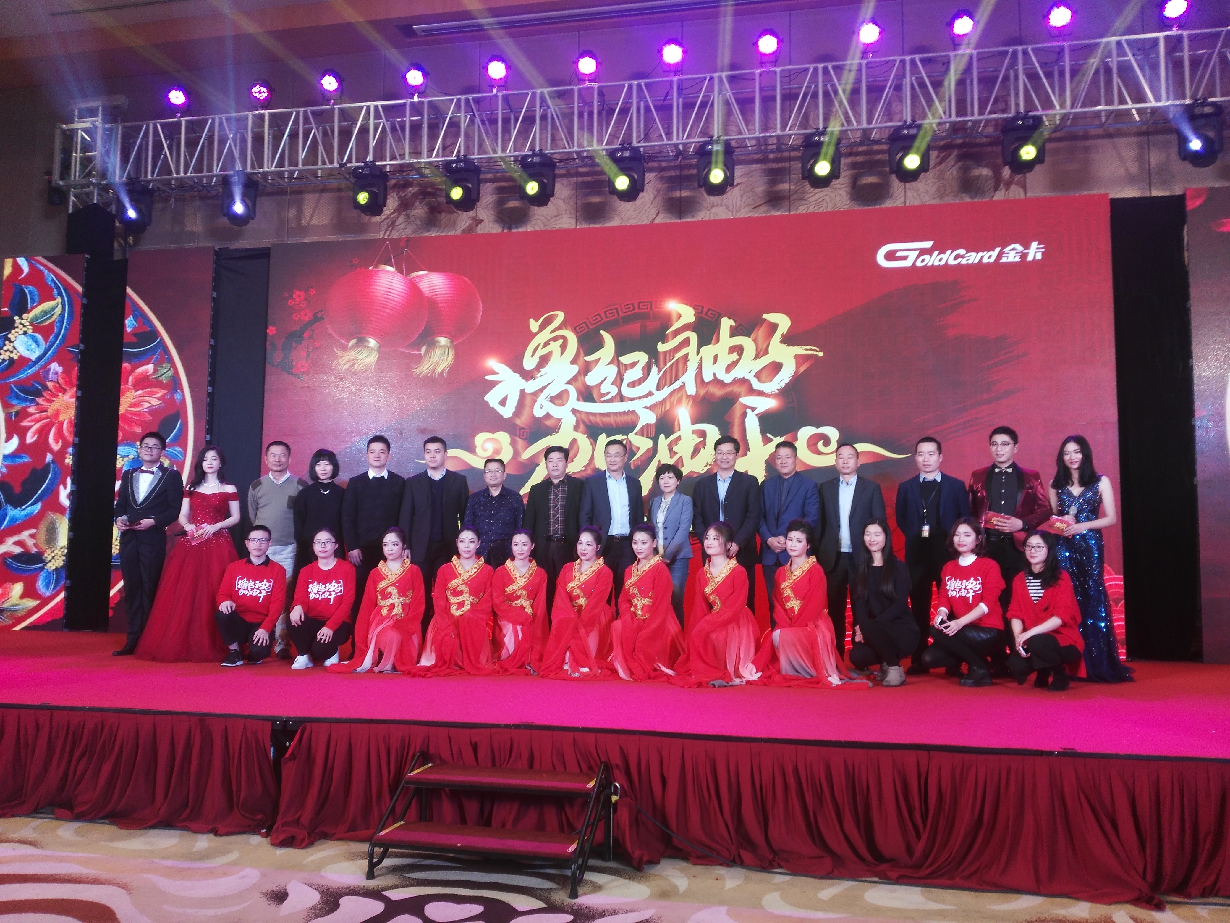 20日下午,一場以擼起袖子加油干為主題的金卡股份2016年度頒獎暨2017年會盛典在杭州希爾頓酒店舉辦,其中我公司也受邀參與到此次年會的節(jié)目中。來自供應鏈中心的林運臨、黃君登臺獻唱的閩南語歌曲《愛拼才會贏》,以及由楊小巧、黃君等七位女同事表演的舞蹈《花間夢》兩個節(jié)目獲得了全場觀眾陣陣喝彩,這也充分展現(xiàn)了天信團隊積極向上、認真干事的精氣神和對天信金卡一家人情懷的美好祝福。