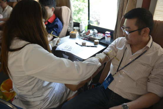 才過8點,參與獻血的員工就已經在登記處排起了隊伍。在獻血活動現場,公司黨工人員認真地協助血站醫務人員做好組織工作,從填表、體檢、化驗、抽血再到發放早餐和獻血證,各個環節都井然有序,有條不紊。在獻血隊伍中,既有經歷多次獻血的老面孔,也有首次參加獻血的新員工。期間,有很多讓人感動的瞬間:供應鏈中心員工華懷鋒、項光近均已連續7年參與無償獻血活動;標定包裝工段的金龍今年再次獻血400cc;來自總裁辦的盧高林、蔣愛芹夫婦結伴參加獻血活動;金卡物流主管班亞東恰好出差天信,看到停放的獻血車也跑來獻血;鮮紅的熱血,從一只只手臂的靜脈中緩緩流出,每位員工都為參加無償獻血感到無上光榮。