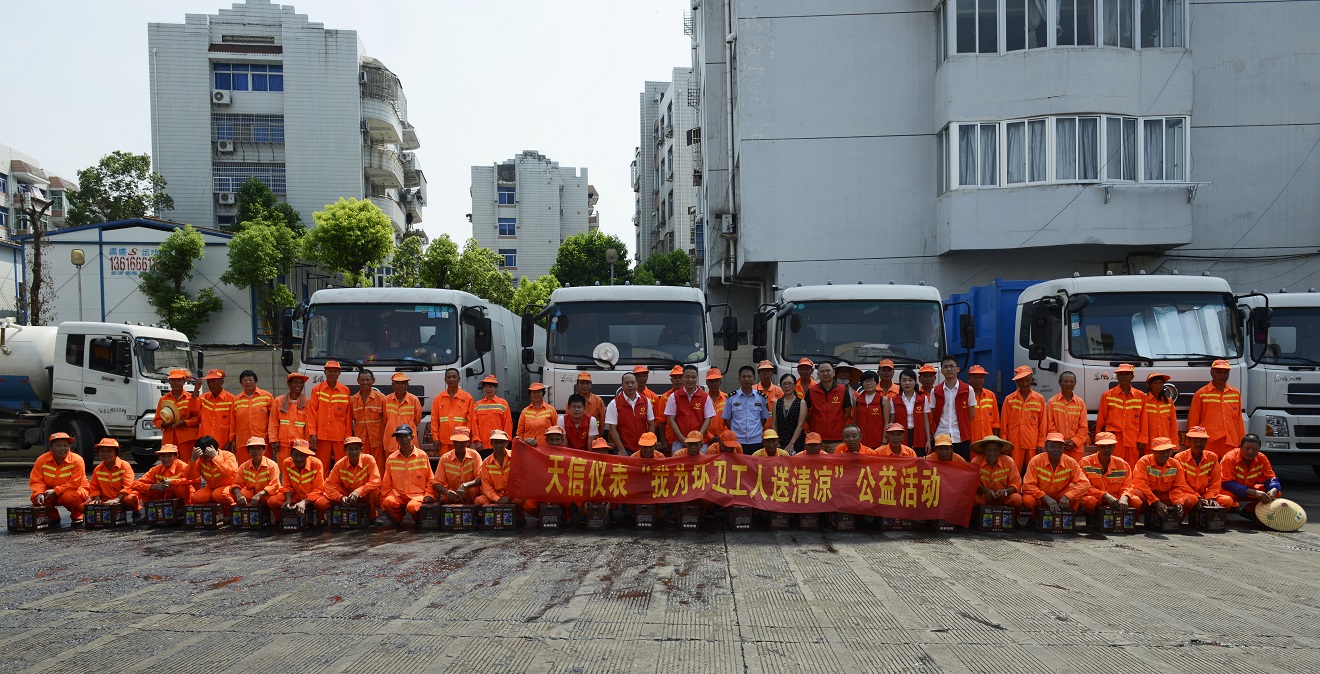 對環(huán)衛(wèi)工人的關(guān)愛,體現(xiàn)了一個城市的文明程度,這不是表現(xiàn)在口頭上,而是體現(xiàn)在具體的行動中。為了號召廣大市民講文明、樹新風(fēng),共同參與城市環(huán)境衛(wèi)生建設(shè),同時緩解、分擔(dān)環(huán)衛(wèi)工人的工作壓力,天信儀表集團有限公司黨工團婦于今年夏季再一次發(fā)起;我為環(huán)衛(wèi)工人送清涼;的微公益活動。